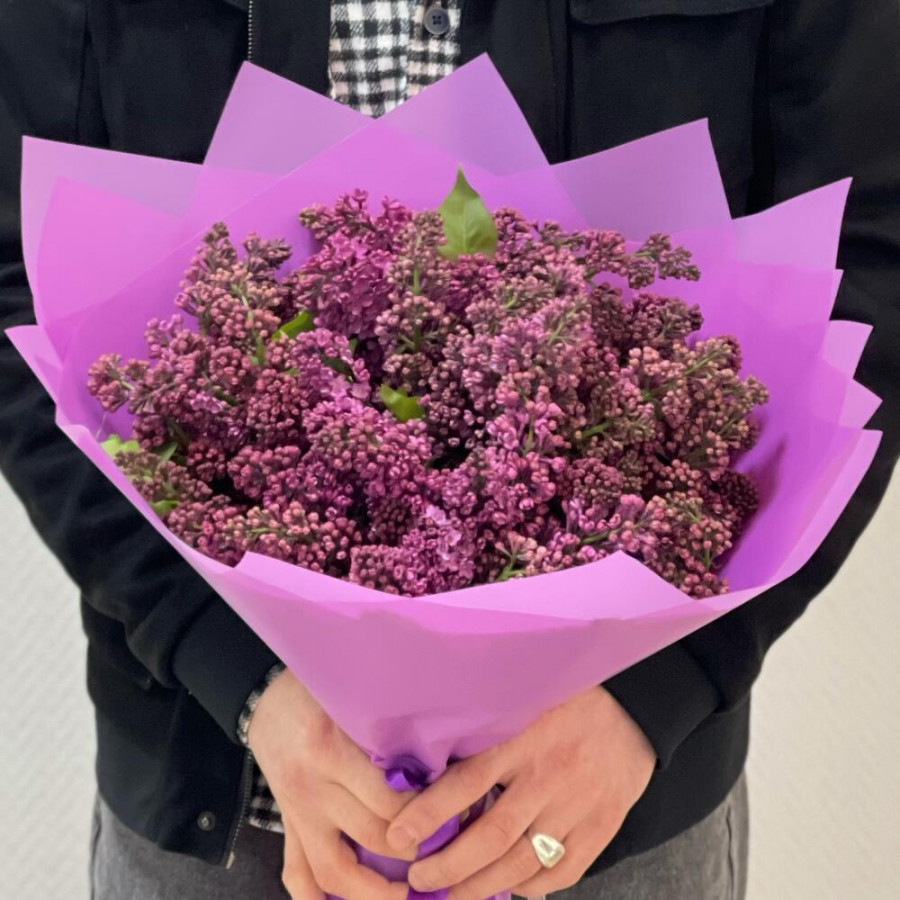На фото букет свежей ароматной сирени. В составе: сирень 21 шт, дизайнерская упаковка 3 шт, атласная лента 2 шт, . Все цветы свежие и ароматные, букет красиво оформлен и отлично подходит для подарка. Доступна доставка цветов или самовывоз.